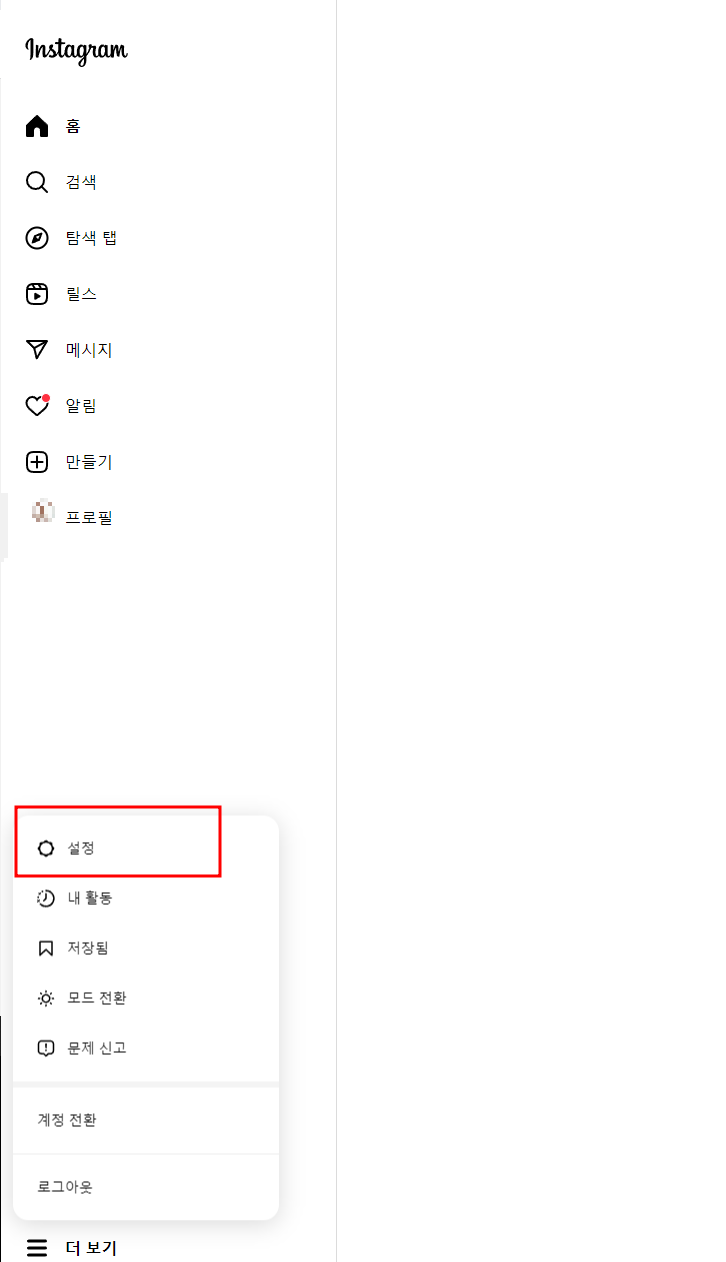 ⓐ인스타그램 로그인해주시고 왼쪽 하단에 줄세개를 클릭 -> 설정 클릭해주세요.