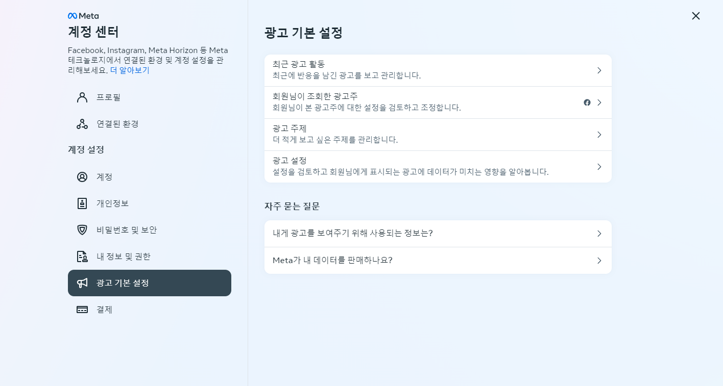 ⓒ광고 기본 설정을 클릭해주세요.