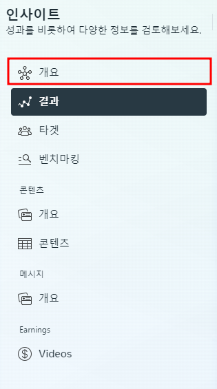 2.왼쪽 인사이트에서 개요를 클릭해주세요