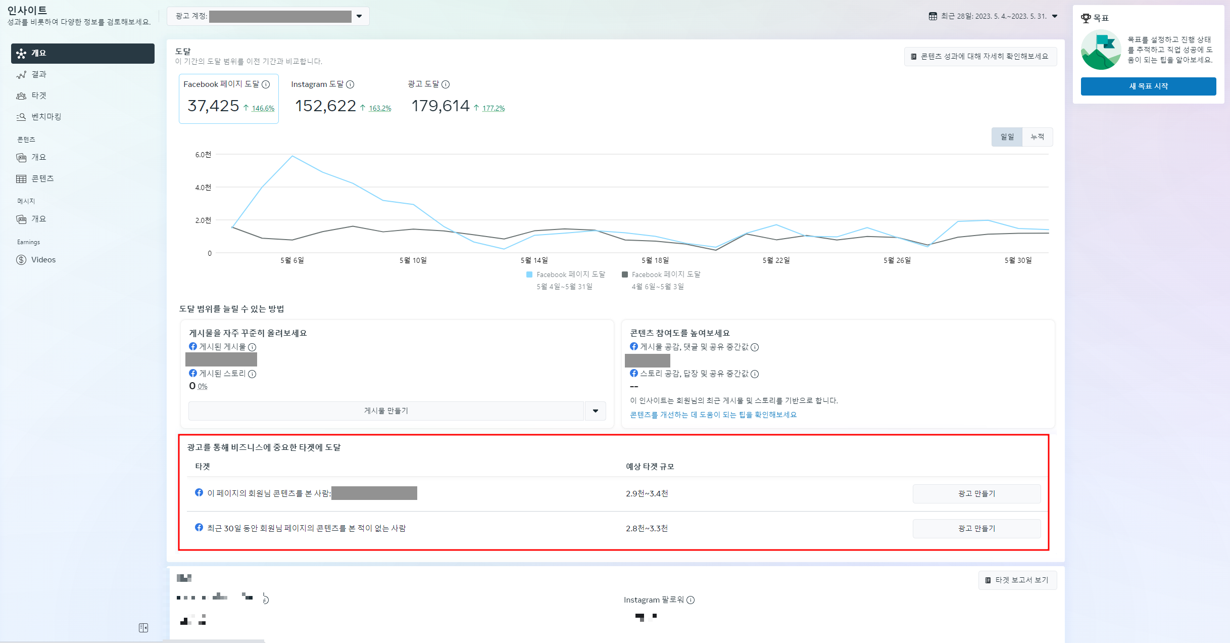 이 부분을 보시면 손쉽게 활용가능해요. 나의 페이지를 관심있게 본 사람들에게 광고를 다시 할 수도 있구요 최근까지 저희 계정 페이지를 보지 못한 사람들에게도 광고를 할 수 있답니다. 인사이트 분석이 어렵다 하시는 분은 비용을 투자하시는 경우 이렇게 페이스북을 통한 광고를 진행해보셔도 괜찮을 것 같습니다. 예상 타겟 규모도 나와있으니 참고하셔서 광고 집행하시면 됩니다.